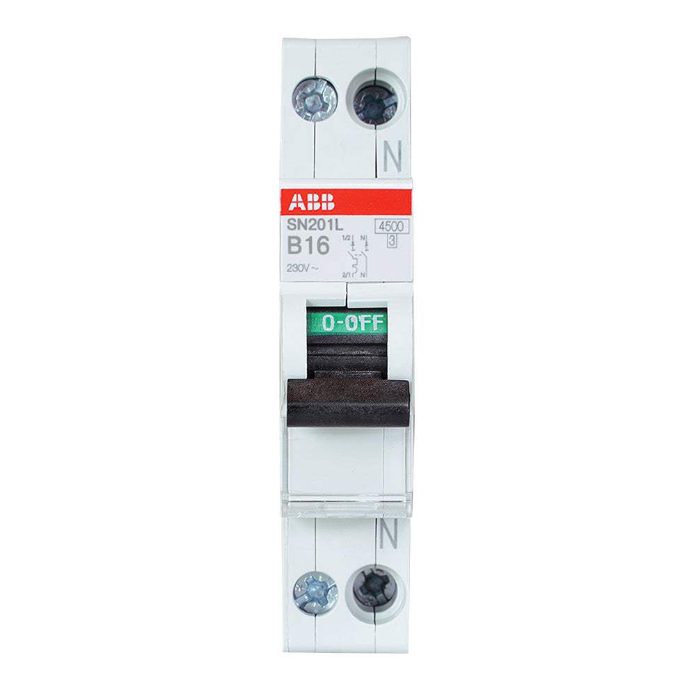 ABB installatieautomaat 1-polig+nul 16A B-kar (2CSS245101R0165)
